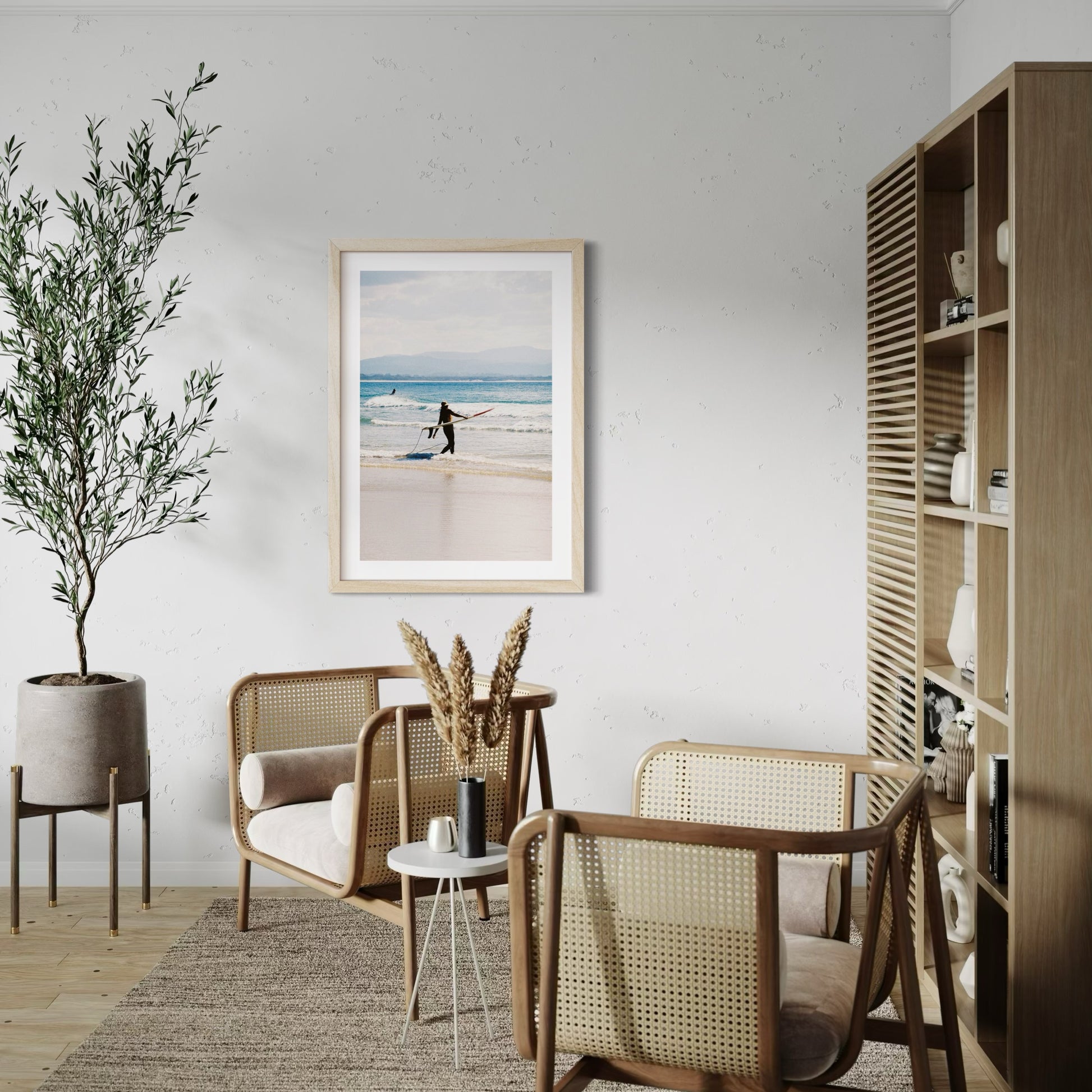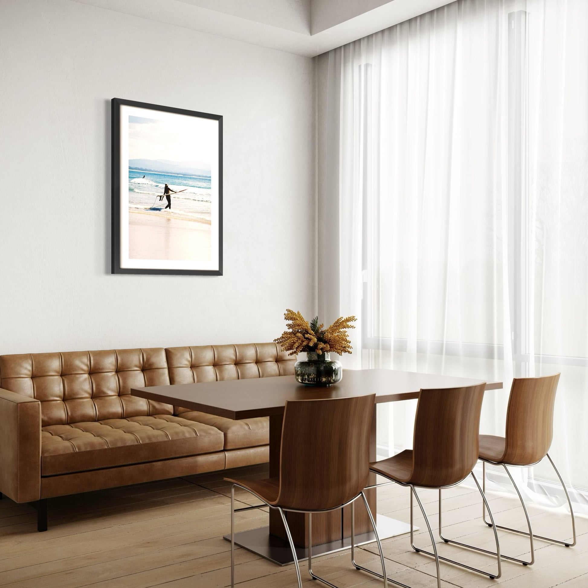 Our frames are crafted from sustainably grown Flooded Gum and available in your choice of Natural or Black. Each print is thoughtfully set back from the glass using a spacer, giving the piece added depth and a premium gallery-style finish.